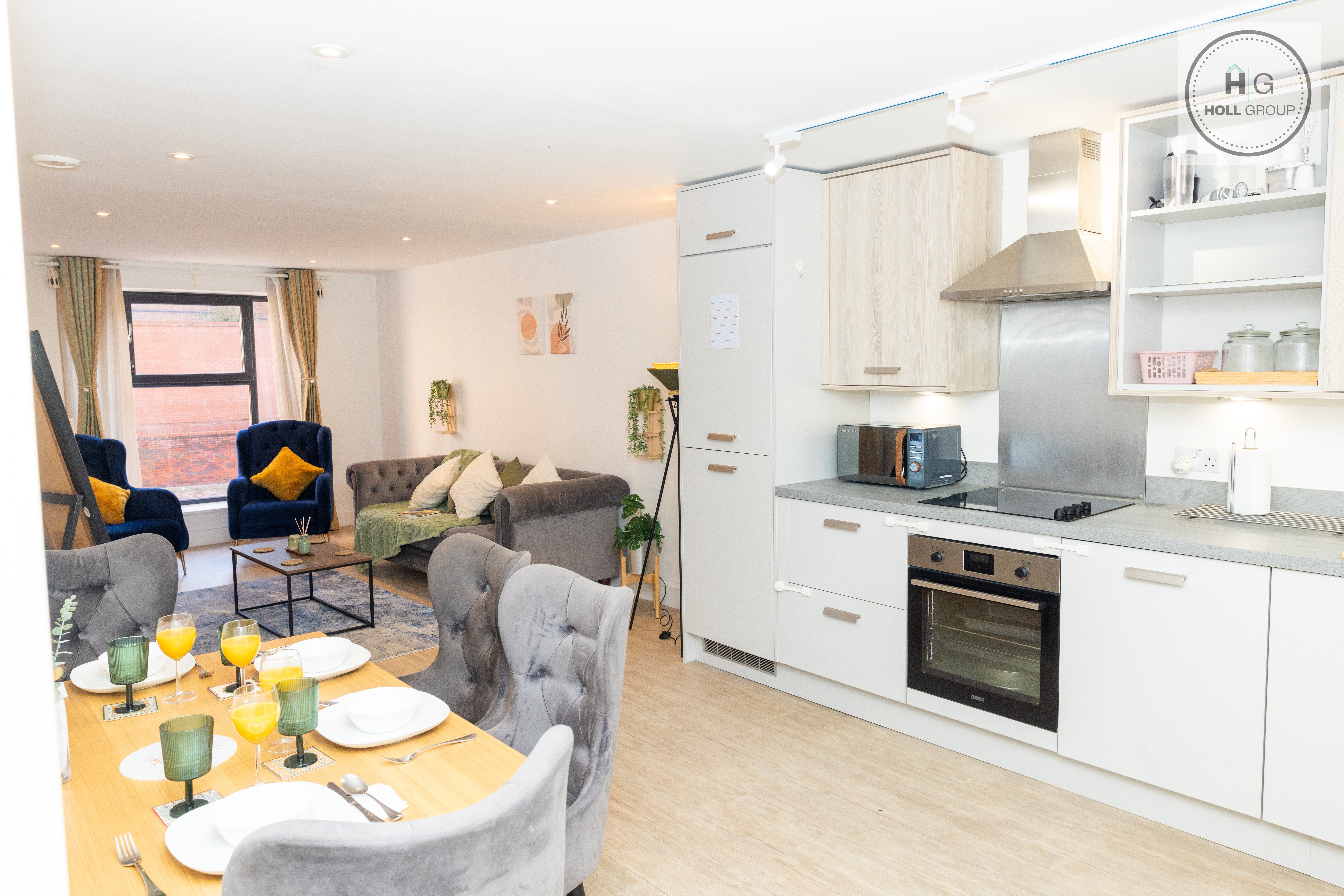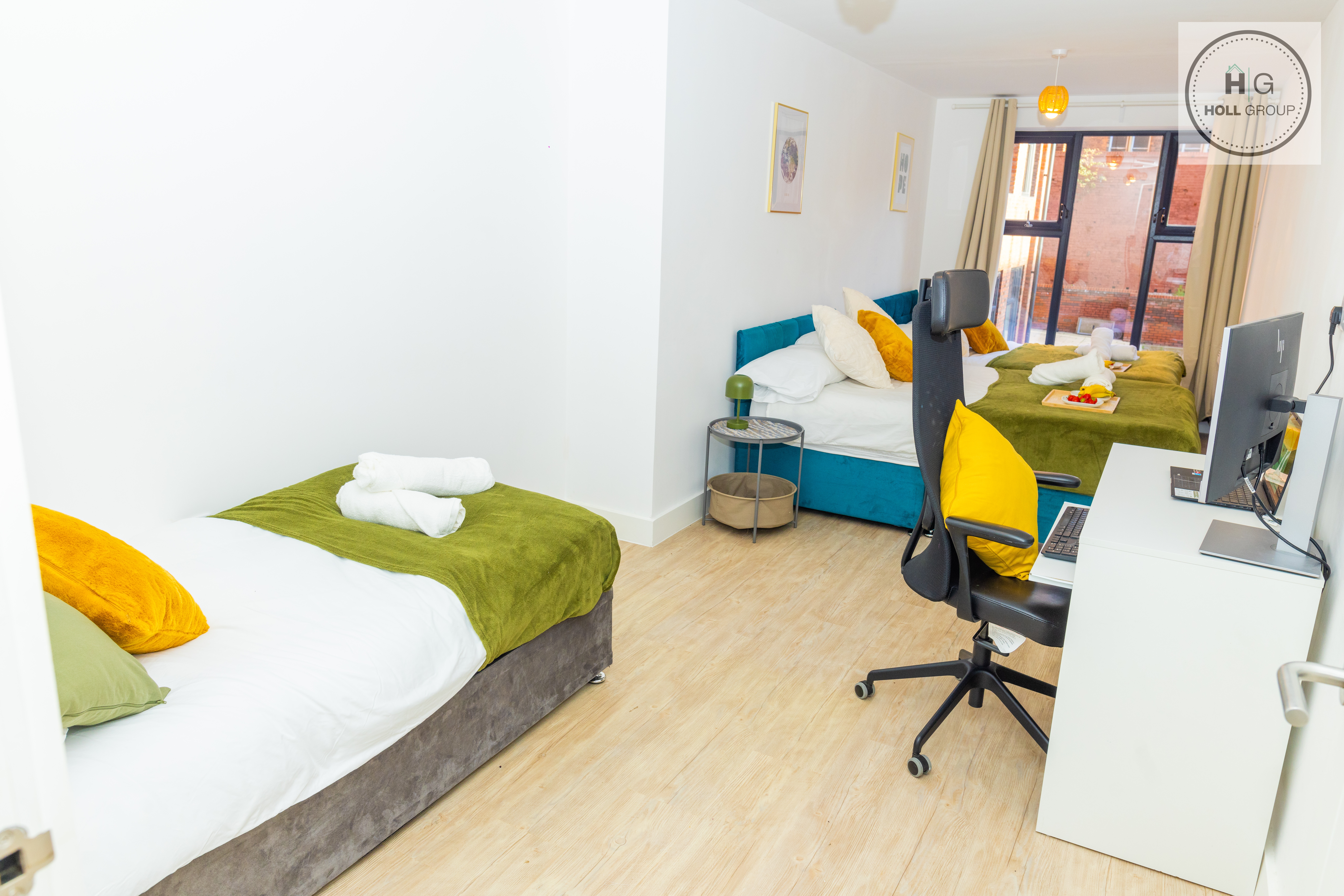 Perfect for large groups, families, and contractors, this spacious apartment in the prestigious Digbeth One building (B12) combines luxury with functionality.