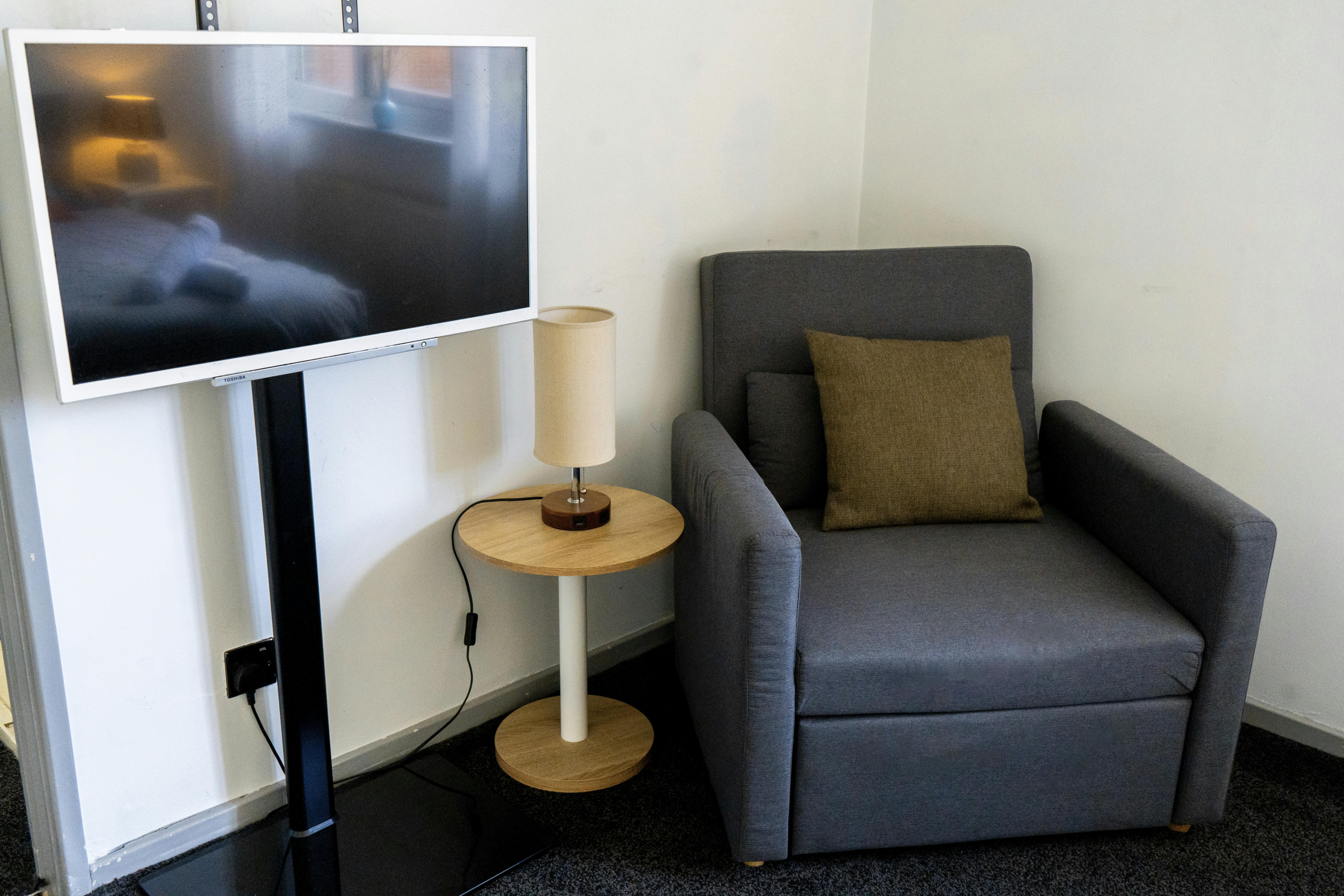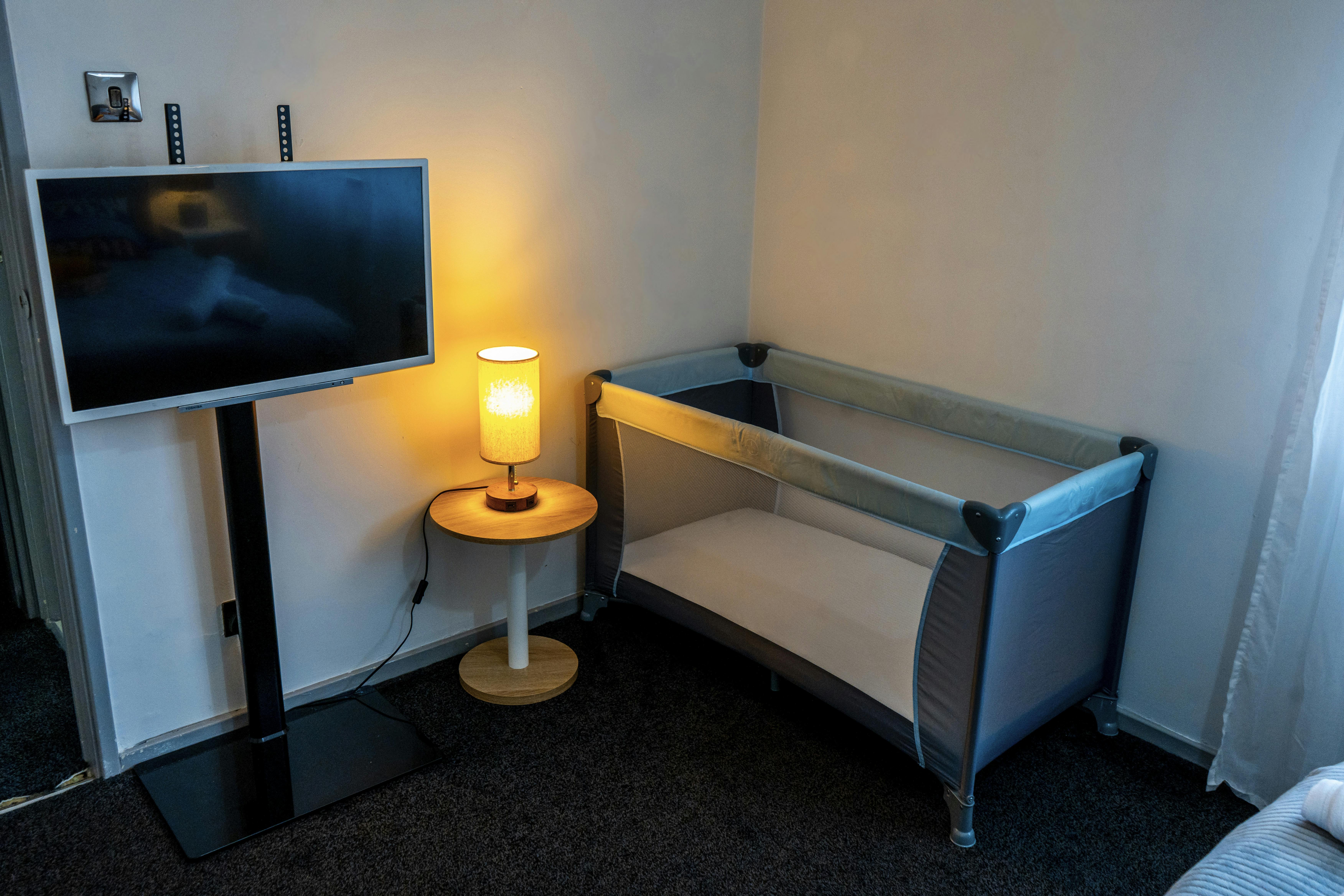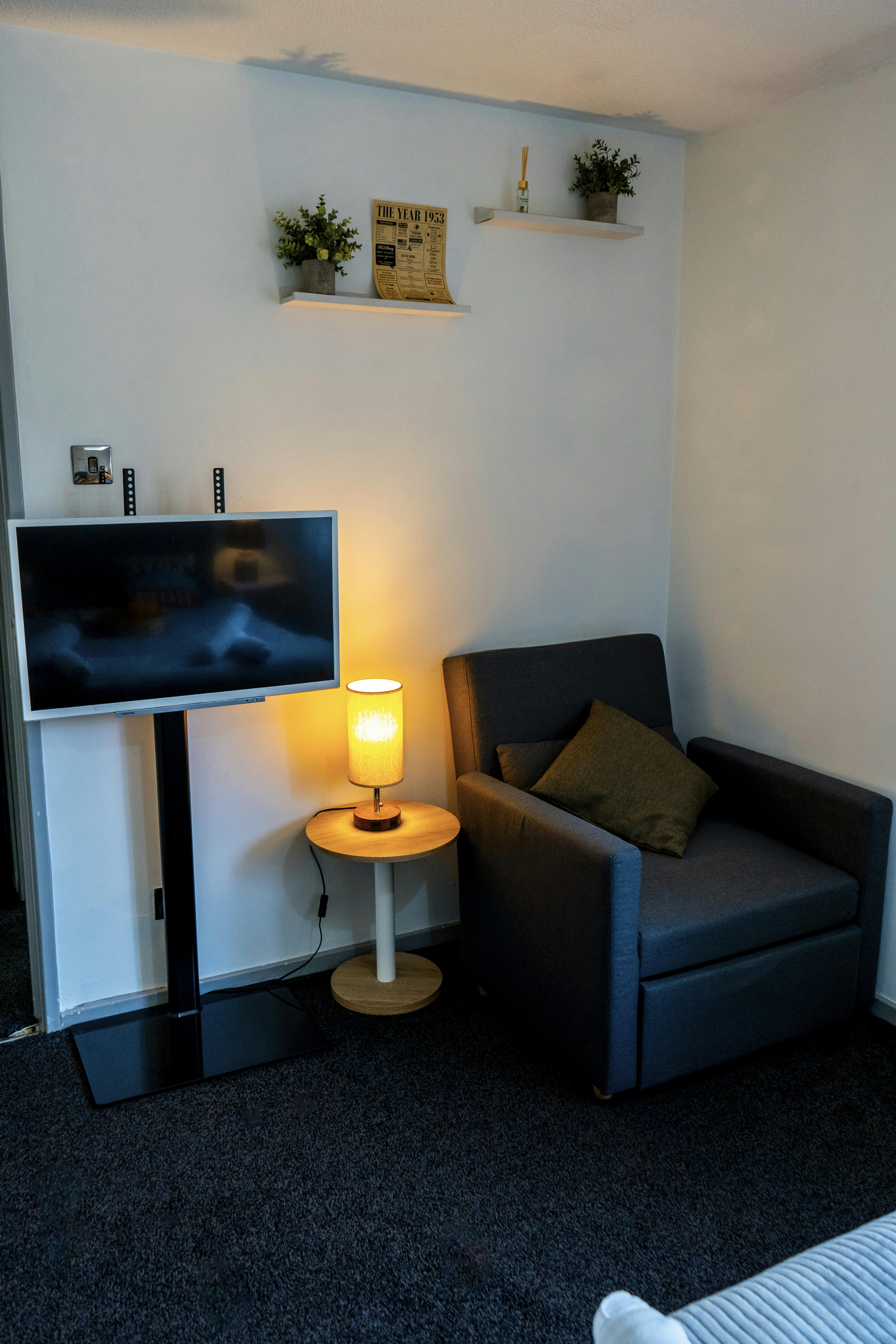 Living Room: Unwind after a shift with the 40" Smart TV (Netflix/Prime/YouTube). Includes a comfortable Sofa Bed.