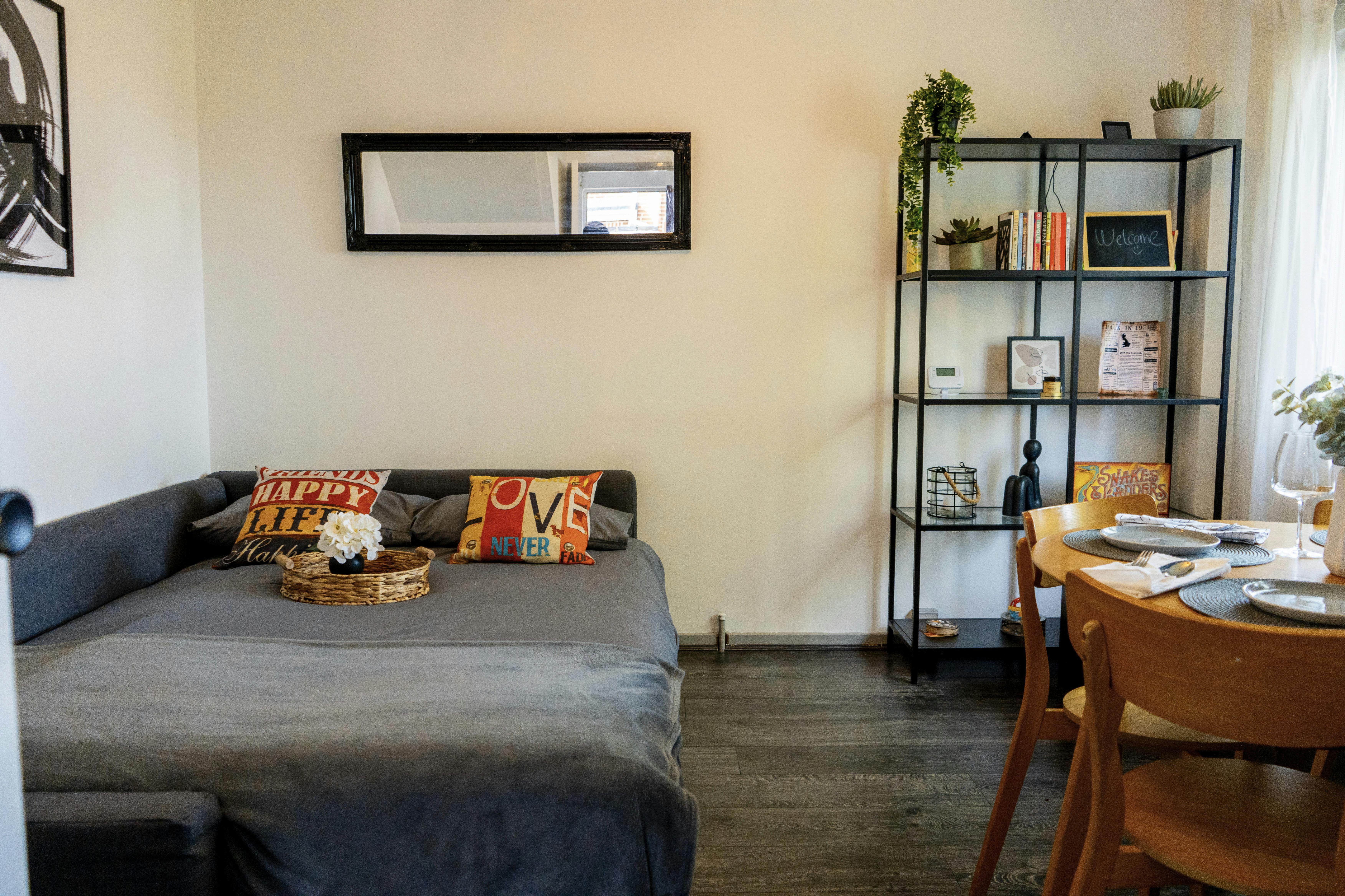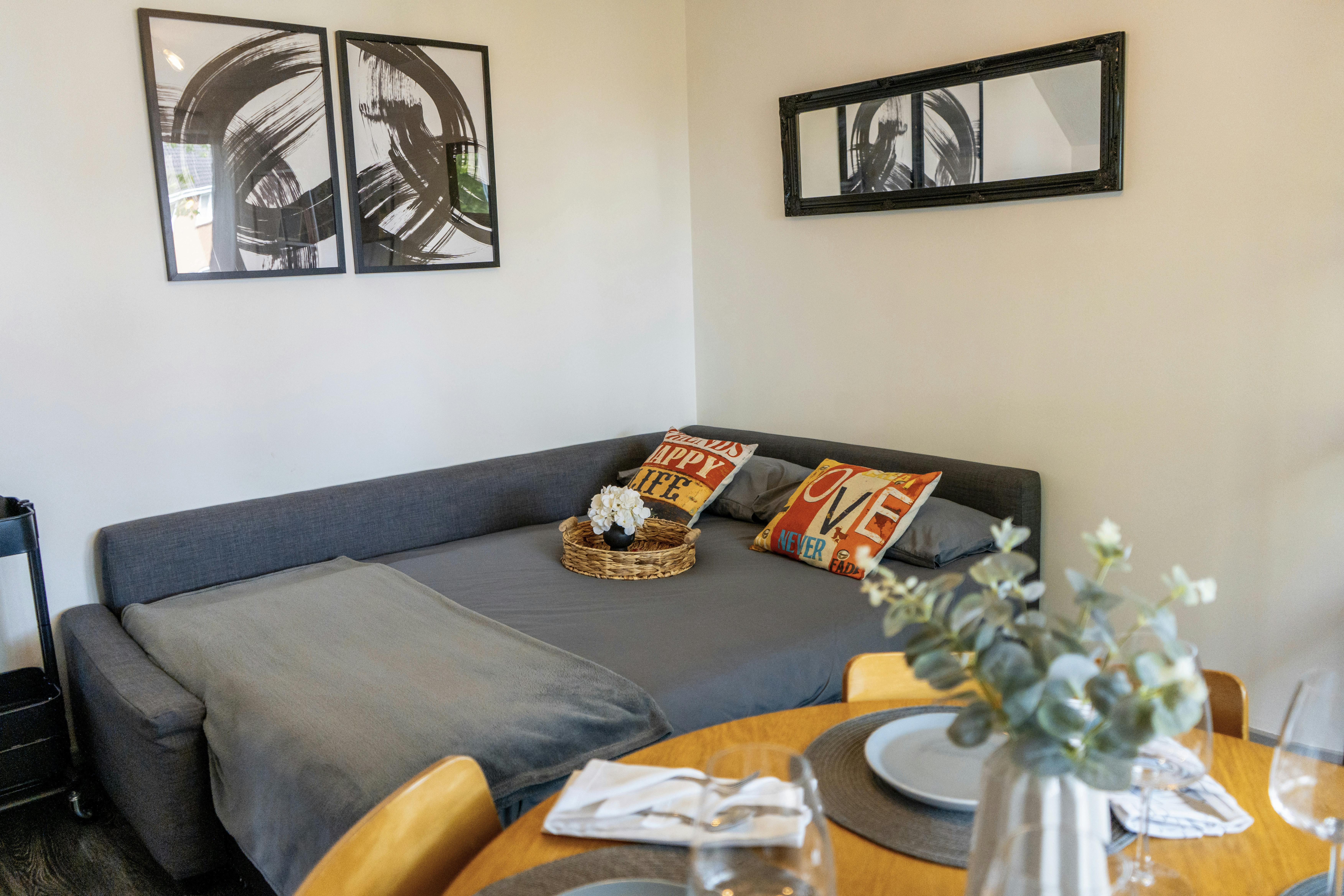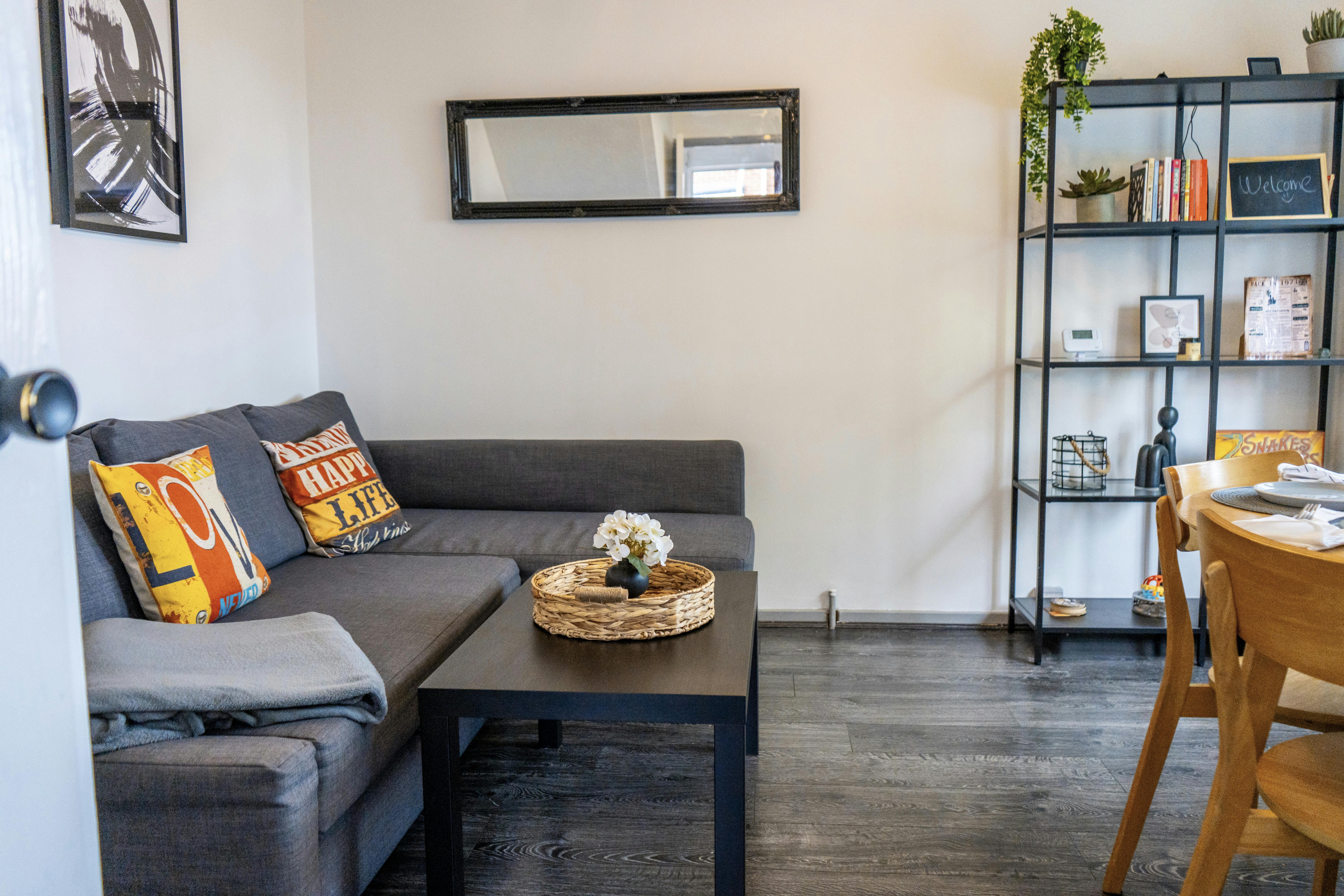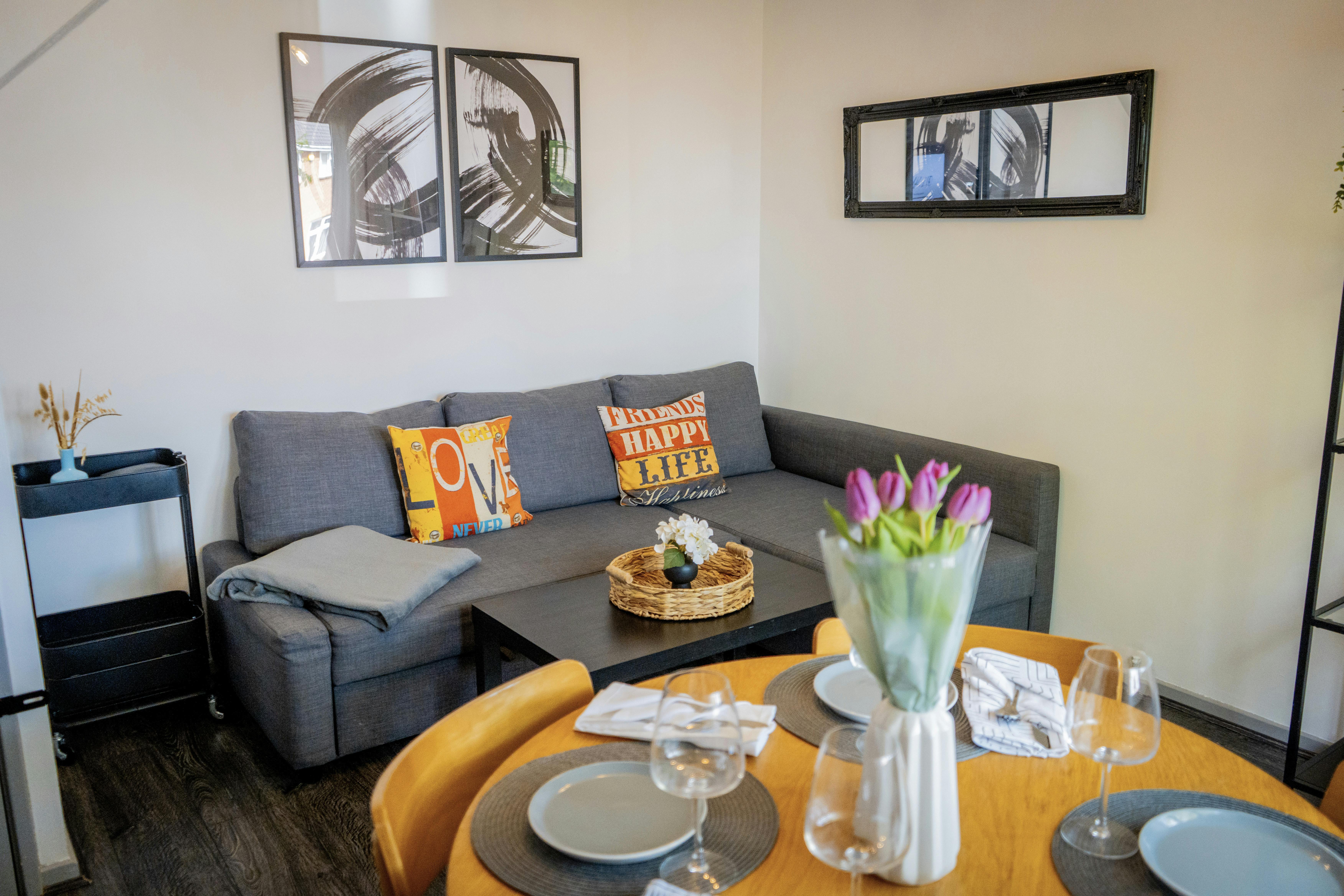 Living Room: Unwind after a shift with the 40" Smart TV (Netflix/Prime/YouTube). Includes a comfortable Sofa Bed.